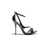 AMBER is a sandal with modern fashion touch. Designer have played with the straps giving a proper balance of coverage and exposure of the foot. It gives a sexy and confident edge whilst also providing support and comfort. Leather sole and leather lined, with a black patent leather upper. The base is made out of a single mold including the heels with elegant curves onto the sandal. 100% Made in Italy. Heel height measures 115mm/4.5 inches