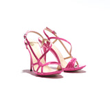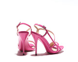 LILY is a pencil heel sandals with modern fashion touch. Designer have played with the straps giving a proper balance of coverage and exposure of the foot. It gives a sexy and confident edge whilst also providing support and comfort. Leather sole and leather lined, with a pink patent leather upper. The base is made out of a single mold including the heels with elegant curves onto the sandal in color gold. 100% Made in Italy. Heel height measures 115mm/4.5 inches