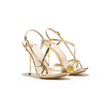 LILY is a pencil heel sandals with modern fashion touch. Designer have played with the straps giving a proper balance of coverage and exposure of the foot. It gives a sexy and confident edge whilst also providing support and comfort. Leather sole and leather lined, with a golden leather upper in matt finish. The base is made out of a single mold including the heels with elegant curves onto the sandal in color gold. 100% Made in Italy. Heel height measures 115mm/4.5 inches