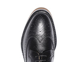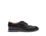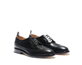 DANNY is a classic medallion toe oxford with broguing details. Black and white grosgrain tape at back representing the stylistic codes of the company. Leather lined with leather sole. The upper is finished in classic grain textured black leather. Contemporary yet classic. Heel height 24mm/0.9 inches.