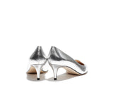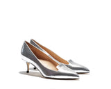 AUDREY is the classic pointy toe kitten. They are finished with a classic silver color geometrical 3D textured leather upper. Leather lined with a leather sole. 100% Made in Italy. Heel height measure 55mm/2.2 inches.