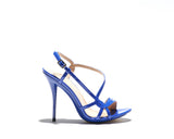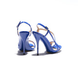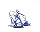 LILY is a pencil heel sandals with modern fashion touch. Designer have played with the straps giving a proper balance of coverage and exposure of the foot. It gives a sexy and confident edge whilst also providing support and comfort. Leather sole and leather lined, with a cobalt blue patent leather upper. The base is made out of a single mold including the heels with elegant curves onto the sandal in color gold. 100% Made in Italy. Heel height measures 115mm/4.5 inches