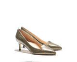 AUDREY is the classic pointy toe kitten. They are finished with a golden black speckled glitter leather upper. Leather lined with a leather sole. 100% Made in Italy. Heel height measure 55mm/2.2 inches.